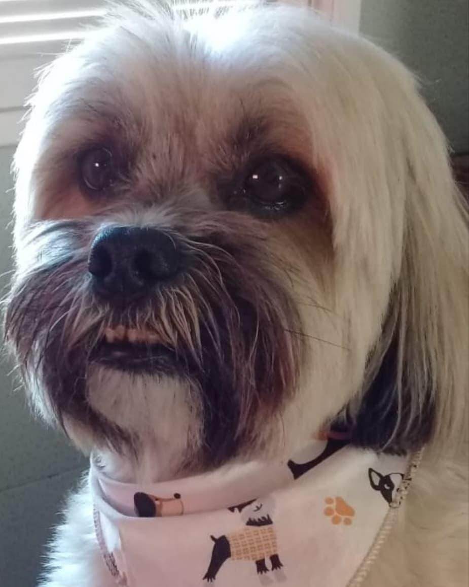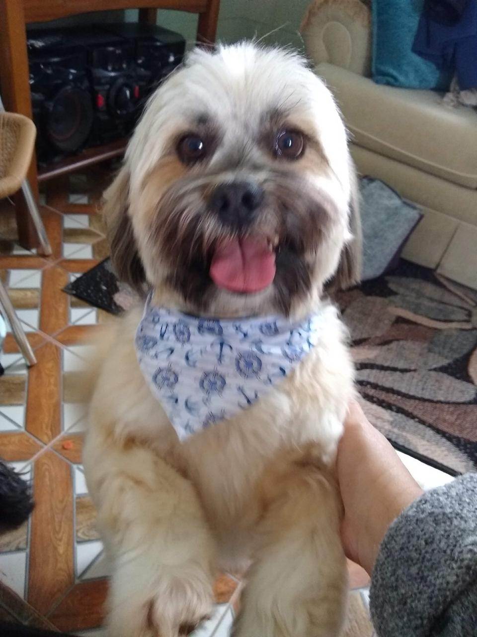 Tibet é um cão saudável, feliz e com energia. Se alimenta de ração, toma banho tanto em casa quanto na PET, adora passear de carro e ganhar carinho